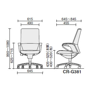 | 外寸 | W615×D645-845×H990-1080mm (SH435-525mm) 脚羽根:Ф645mm |
