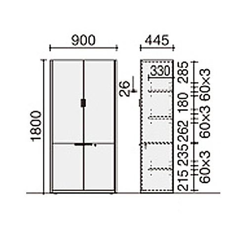 | 外寸法: | 幅900mm × 奥行460mm × 高さ1800mm |