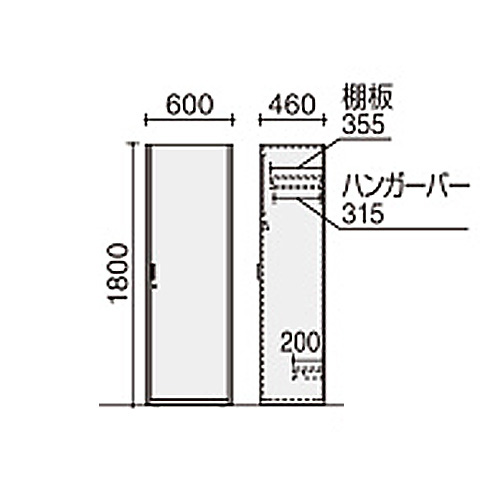 | 外寸法: | 幅600mm × 奥行460mm × 高さ1800mm |