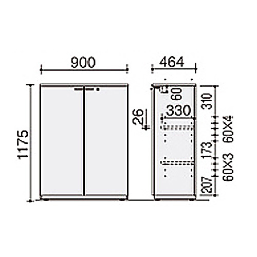 | 外寸法: | 幅900mm × 奥行464mm × 高さ1175mm |