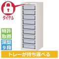 深型タイプ 1列9段 9人用 ダイヤル錠タイプ(オールロック仕様) ※配薬キャビネット・与薬カートは、 トレーだけを購入して浅型⇔深型の変更が自由にできます。 |