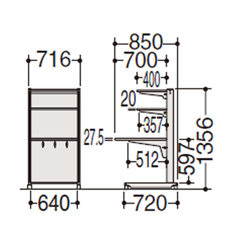 外寸 | W716×D850×H1356mm | 天板サイズ | W700×D700mm |