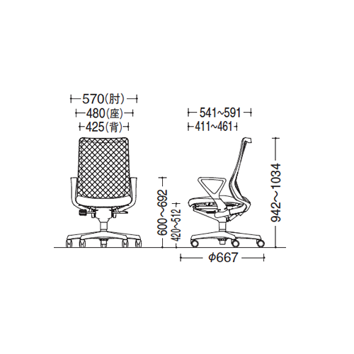 | 外寸 | 570W×541~591D×420~512SH・942~1034H |