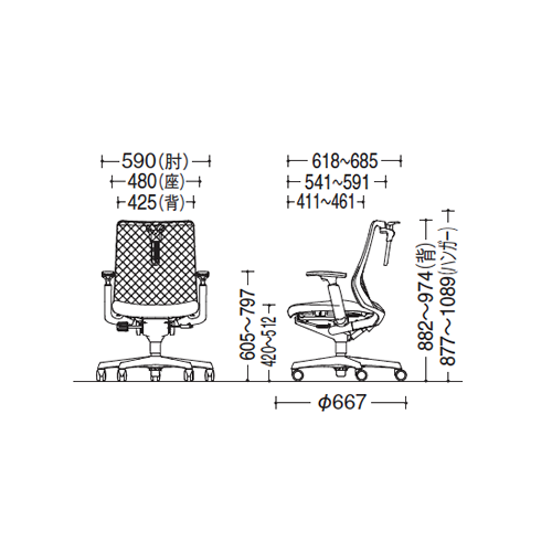 | 外寸 | 590W×541~591D×420~512SH・882~974H |