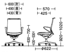 600W×570D×430~530SH・920~1020H 脚外径/φ622 |