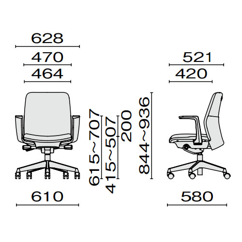 | 外寸 | W628xD521xH844~936(SH415~507)mm |