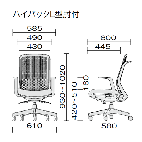 ハイバック L型肘付 樹脂脚 |