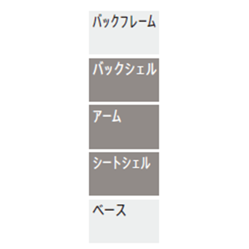 背座部:布張り,モードウレタン 背裏部:樹脂 肘部:本体支柱/樹脂,パッド部/ソフトパッド 脚部:強化プラスチック(PA) キャスター部:ナイロンキャスター |
