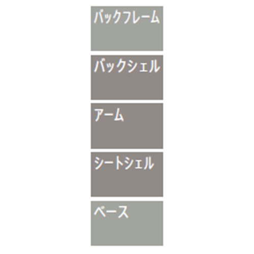 背座部:布張り,モードウレタン 背裏部:樹脂 肘部:本体支柱/樹脂,パッド部/ソフトパッド 脚部:強化プラスチック(PA) キャスター部:ナイロンキャスター |