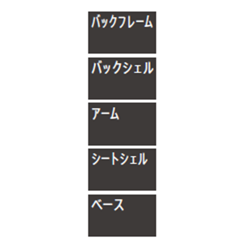 背座部:布張り,モードウレタン 背裏部:樹脂 肘部:本体支柱/樹脂,パッド部/ソフトパッド 脚部:強化プラスチック(PA) キャスター部:ナイロンキャスター |
