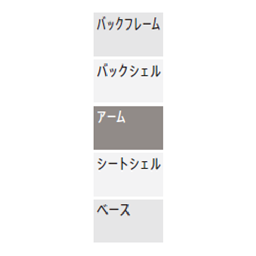 背座部:布張り,モードウレタン 背裏部:布張り,樹脂 肘部:本体支柱/樹脂,パッド部/ソフトパッド 脚部:強化プラスチック(PA) キャスター部:ナイロンキャスター |