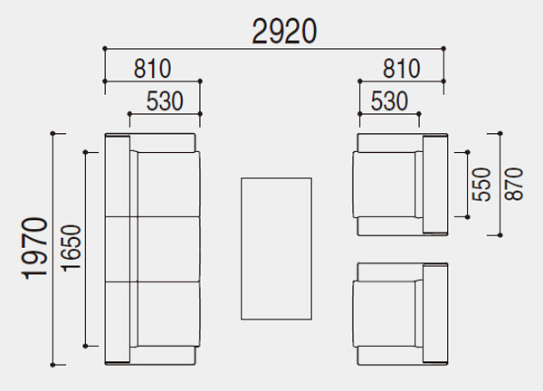 | 外寸法: | 幅1970mm × 奥行810mm × 高さ760mm |