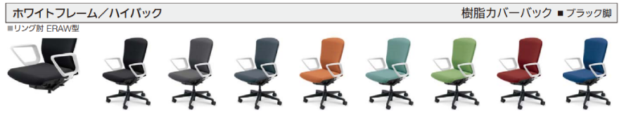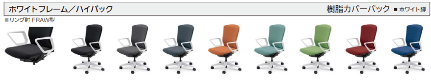 クロスタイプ ハイバック 背樹脂カバータイプ リング肘(ERAW型)付き ナイロンキャスター ※カーペット床などの柔らかい床やクッションフロア等滑りづらい床に適しています |