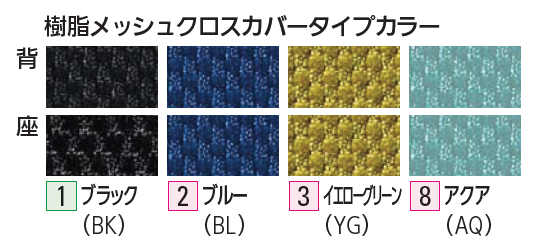 フレーム:ブラック クロスメッシュ: 1 ブラック(BK) 2 ブルー(BL) 3 イエローグリーン(YG) 8 アクア(AQ) |