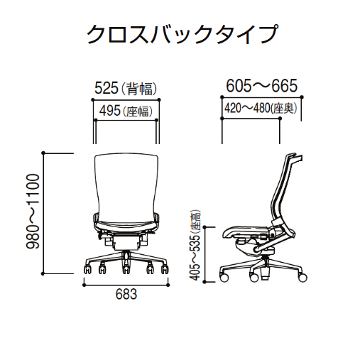 | 外寸 | W525×D605-665×H980-1100mm (SH405-535mm) |