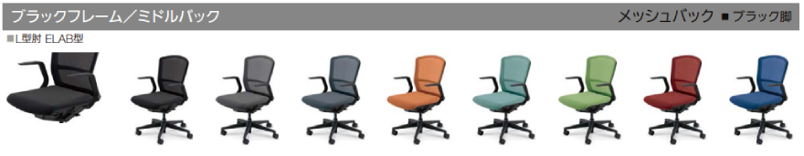メッシュタイプ ミドルバック L型肘(ELAB型)付き ナイロンキャスター ※カーペット床などの柔らかい床やクッションフロア等滑りづらい床に適しています |