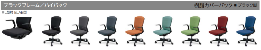 クロスタイプ ハイバック 背樹脂カバータイプ L型肘(ELAB型)付き ウレタンキャスター ※木質のフローリングなど硬めの床で、汚れが気になる場合に適しています |