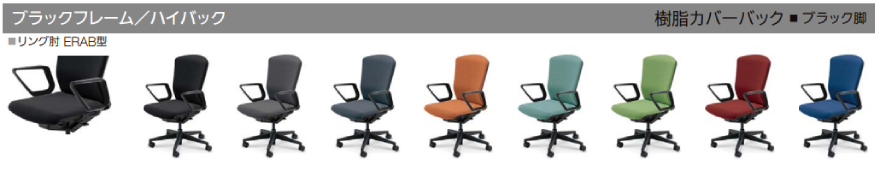 クロスタイプ ハイバック 背樹脂カバータイプ リング肘(ERAB型)付き ウレタンキャスター ※木質のフローリングなど硬めの床で、汚れが気になる場合に適しています |