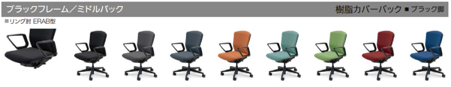 クロスタイプ ミドルバック 背樹脂カバータイプ リング肘(ERAB型)付き ウレタンキャスター ※木質のフローリングなど硬めの床で、汚れが気になる場合に適しています |