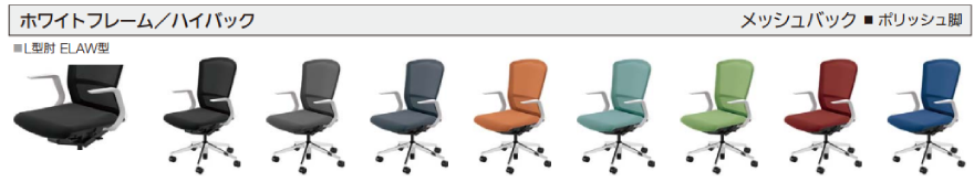 ■内田洋行正規特約店 ■メーカー直送品 内田洋行(ウチダ) オフィスチェア エルフィチェア(Elfie) メッシュタイプ ハイバック ポリッシュ脚 L型肘(ELAW型/ELAB型) ウレタンキャスター <ホワイトフレーム/ブラックフレーム> EA-511M-WPLA-PU/EA-511M-BPLA-PU 5-360-2910/5-360-2911/5-360-2912/5-360-2913/5-360-2914/5-360-2915/5-360-2916/5-360-2917/5-360-2310/5-360-2311/5-360-2312/5-360-2313/5-360-2314/5-360-2315/5-360-2316/5-360-2317/ 無駄のない、洗練されたデザイン。多様化する働き方に応えてくれる上質なチェア、それがElfieチェアです。どんなシーンにもなじむシンプルなデザインと多彩なバリエーション、快適な座り心地を追求して新たに開発した最新のメカニズム。デザインと確かな性能が高い次元で融合しています。