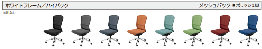 ■内田洋行正規特約店 ■メーカー直送品 内田洋行(ウチダ) オフィスチェア エルフィチェア(Elfie) メッシュタイプ ハイバック ポリッシュ脚 肘無 ナイロンキャスター <ホワイトフレーム/ブラックフレーム> EA-501M-WPAL-PA/EA-501M-BPAL-PA 5-360-2800/5-360-2801/5-360-2802/5-360-2803/5-360-2804/5-360-2805/5-360-2806/5-360-2807/5-360-2200/5-360-2201/5-360-2202/5-360-2203/5-360-2204/5-360-2205/5-360-2206/5-360-2207/ 無駄のない、洗練されたデザイン。多様化する働き方に応えてくれる上質なチェア、それがElfieチェアです。どんなシーンにもなじむシンプルなデザインと多彩なバリエーション、快適な座り心地を追求して新たに開発した最新のメカニズム。デザインと確かな性能が高い次元で融合しています。