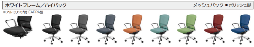 ■内田洋行正規特約店 ■メーカー直送品 内田洋行(ウチダ) オフィスチェア エルフィチェア(Elfie) メッシュタイプ ハイバック ポリッシュ脚 アルミリング肘(EARPA型) ナイロンキャスター <ホワイトフレーム/ブラックフレーム> EA-561M-WPRP-PA/EA-561M-BPRP-PA 5-360-2860/5-360-2861/5-360-2862/5-360-2863/5-360-2864/5-360-2865/5-360-2866/5-360-2867/5-360-2260/5-360-2261/5-360-2262/5-360-2263/5-360-2264/5-360-2265/5-360-2266/5-360-2267/ 無駄のない、洗練されたデザイン。多様化する働き方に応えてくれる上質なチェア、それがElfieチェアです。どんなシーンにもなじむシンプルなデザインと多彩なバリエーション、快適な座り心地を追求して新たに開発した最新のメカニズム。デザインと確かな性能が高い次元で融合しています。