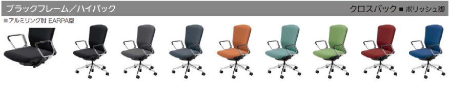 クロスタイプ ハイバック 両面クロスタイプ アルミリング肘(EARPA型)付き ウレタンキャスター ※木質のフローリングなど硬めの床で、汚れが気になる場合に適しています。 |