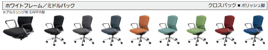 ■内田洋行正規特約店 ■メーカー直送品 内田洋行(ウチダ) オフィスチェア エルフィチェア(Elfie) 両面クロスタイプ(クロスバック) ミドルバック ポリッシュ脚 アルミリング肘(EARPA型) ナイロンキャスター <ホワイトフレーム/ブラックフレーム> EA-361C-WPRP-PA/EA-361C-BPRP-PA 5-360-5860/5-360-5861/5-360-5862/5-360-5863/5-360-5864/5-360-5865/5-360-5866/5-360-5867/5-360-5260/5-360-5261/5-360-5262/5-360-5263/5-360-5264/5-360-5265/5-360-5266/5-360-5267/ 無駄のない、洗練されたデザイン。多様化する働き方に応えてくれる上質なチェア、それがElfieチェアです。どんなシーンにもなじむシンプルなデザインと多彩なバリエーション、快適な座り心地を追求して新たに開発した最新のメカニズム。デザインと確かな性能が高い次元で融合しています。