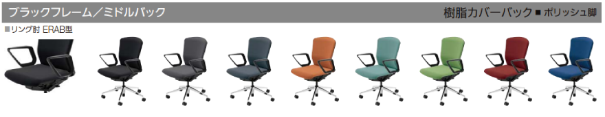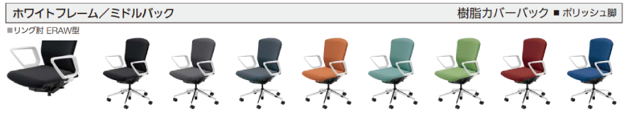 クロスタイプ ミドルバック 樹脂カバーバック リング肘(ERAW型/ERAB型)付き ウレタンキャスター ※木質のフローリングなど硬めの床で、汚れが気になる場合に適しています |