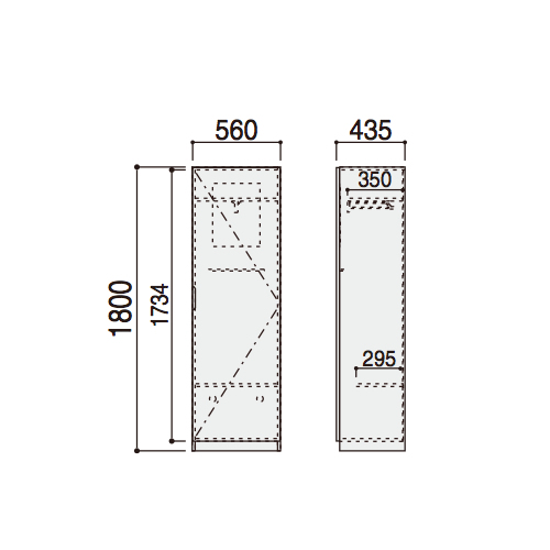 | 外寸法: | 幅560mm × 奥行435mm × 高さ1800mm |