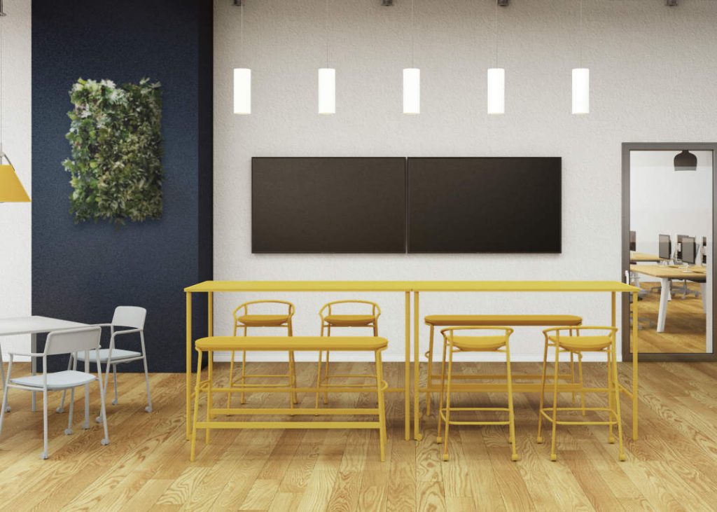 脚のカラー・天板形状・4本脚タイプからT字脚タイプまで、デザインが豊富に用意されているシリーズ。豊富なバリエーションで、組み合わせによって様々なシーンでの使い方やデザインテイストに対応するオフィスを作り上げることができます。